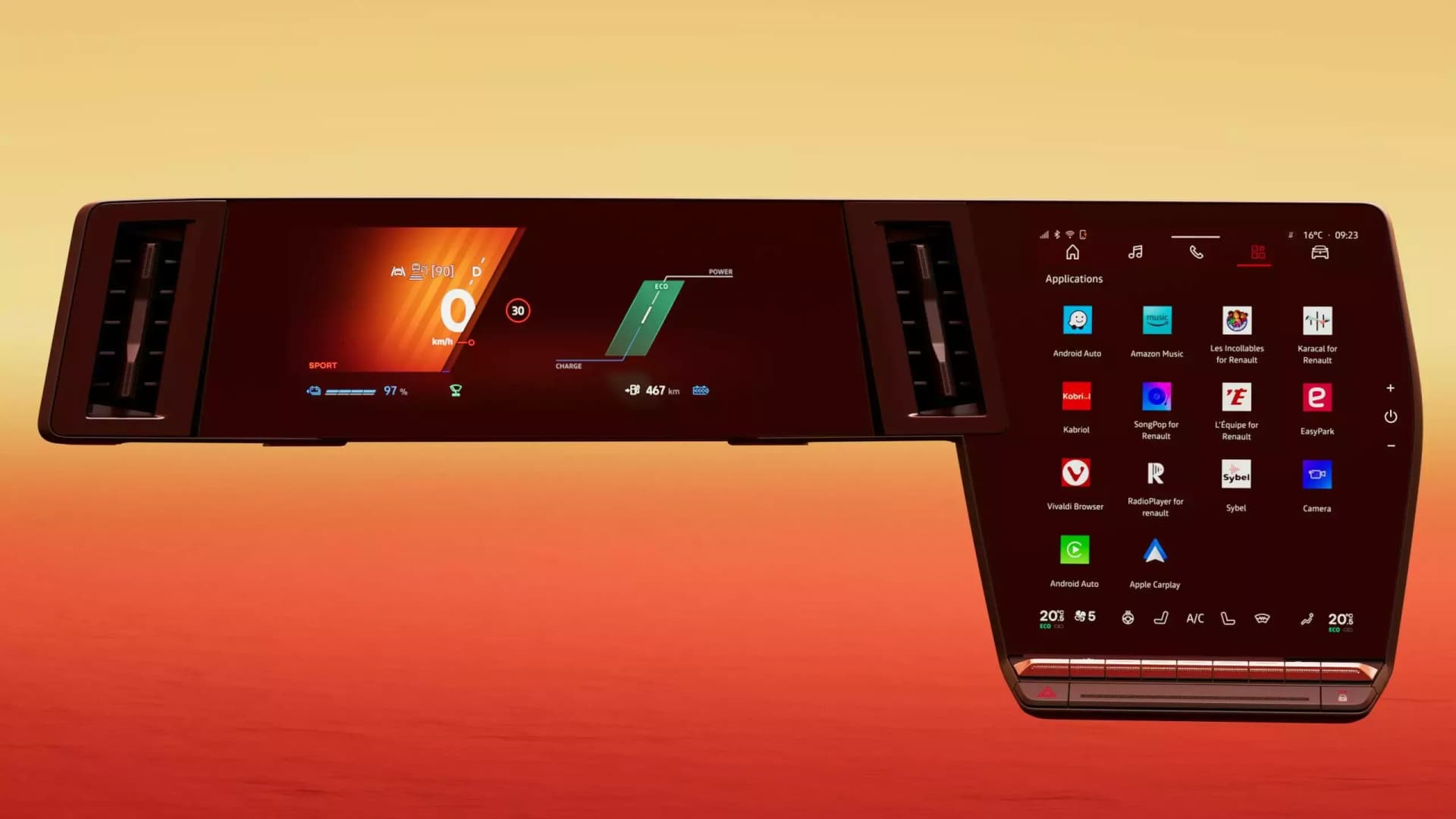 Bruk multiemediesystemet openR-link, med innebygd Google, og konfigurer opptil 5 kontoer. Få tilgang til alle dine favorittapper og nyt det beste av Google uten å koble til telefonen din