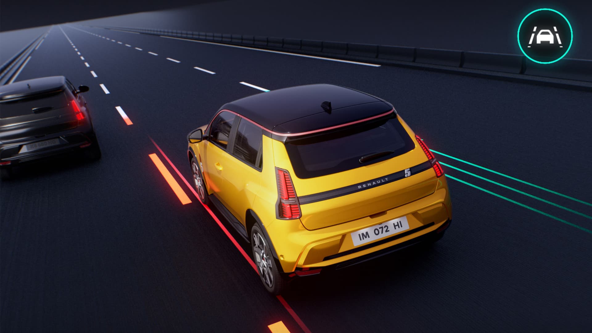 Klikk på knappen under for å utforske noen av førerassistent- og sikkerhetssystemene i Renault 5 E-Tech electric.